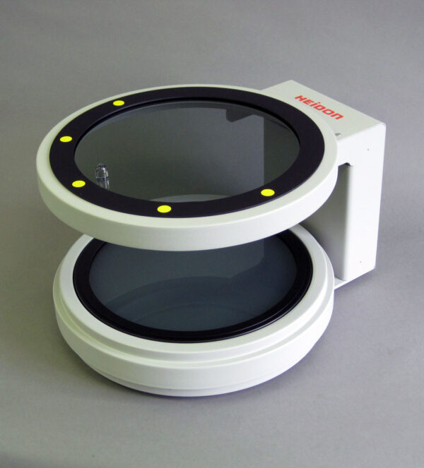 This unique device helps identify stress points on transparent and translucent plastics and polymers. Utilizing the principle of polarization, two film plates are turned to provide the optimal viewing index. Stress points are easily viewed through the large (280mm) circular viewing window.
