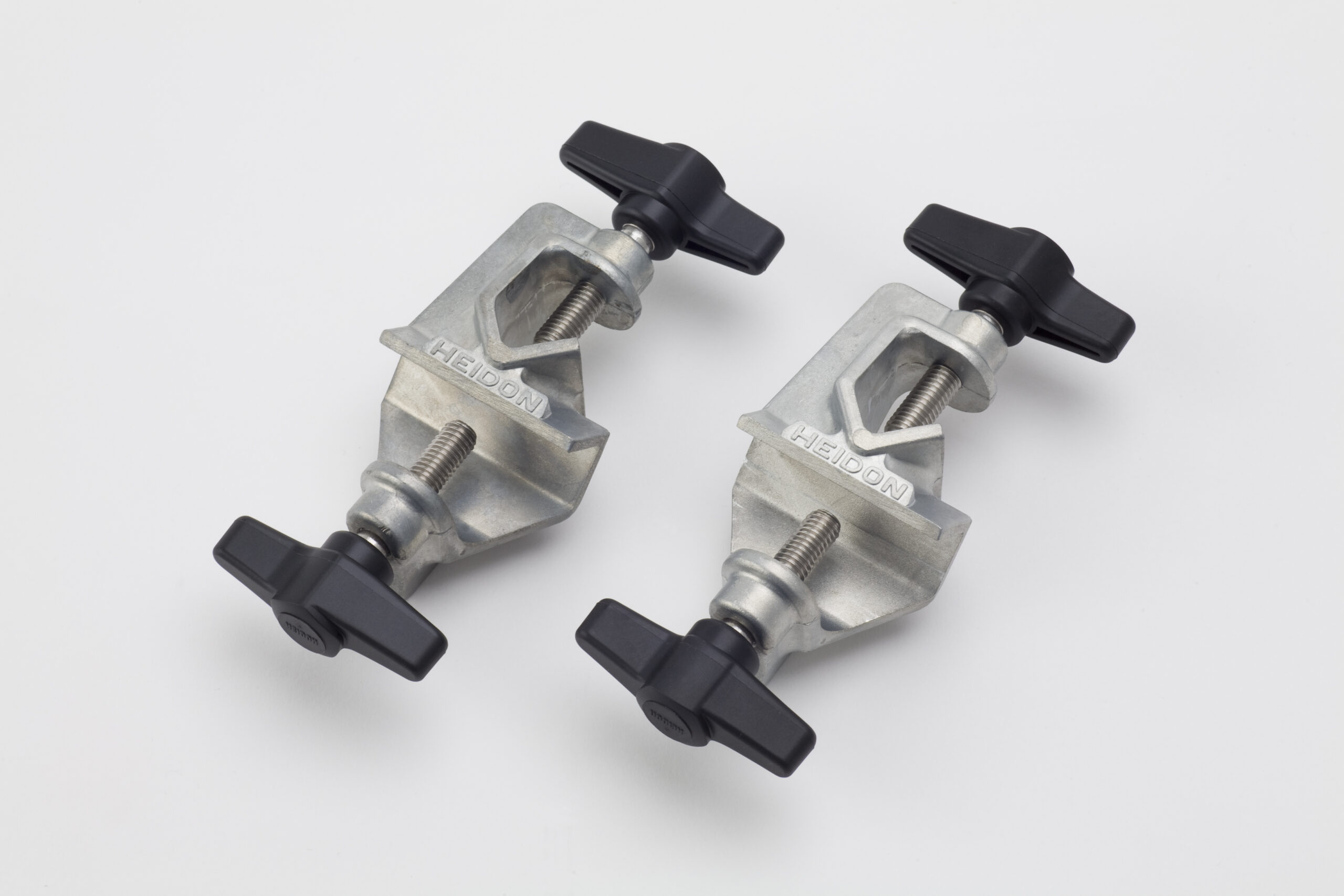 Replacement or additional clamps for mixing systems. One part of clamp attaches to the stand and the other to the mixing motor. Allows for simple adjustment of height and angle. Main image shows two clamps.