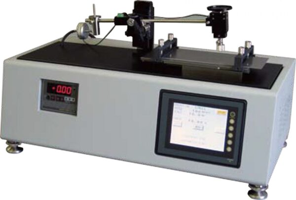 Benchtop low cost surface property tester including a 1000gf loadcell, Sapphire needle(0.05R 90 degrees x 1), Vertical gauge for sapphire needle(1), a set of combination deadweight, Power cable(1), Acrylic resin cover(1), Parts box(1), Tool spanner(1) and Operating instruction manual(1). Commissioning and Tribosoftware w/PC are not included. The set of combination deadweight includes 200gx1, 100gx2, 50gx1, 20gx1, 10gx2, 5gx1, 2gx1 and 1gx1.